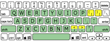 On we go! In this lesson we cover three sets of brackets: the angular brackets "above" the comma and period, the square brackets to the right of the top letters row, and the curly brackets on the same keys with the shift key. None of these bracket sets are terribly common in everyday typing, but they do pop up from time to time, especially if you're involved with any sort of computer programming or mathematics.
