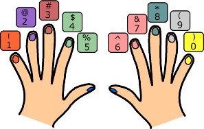 It is easy to remember where they are and the proper fingers to use, because it is simply like counting on your fingers, in reverse! It goes from 1 to 0 (think of "0" as "10" for this!), starting the count with the left-hand pinky finger, ending with the right-hand pinky finger. Instead of counting the thumbs use the index fingers for two numbers. Easy-peasy!