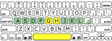 In this lesson, we ease you in gently by introducing one additional letter for each index finger: the G key for the left hand index, and the H key for the right hand index.